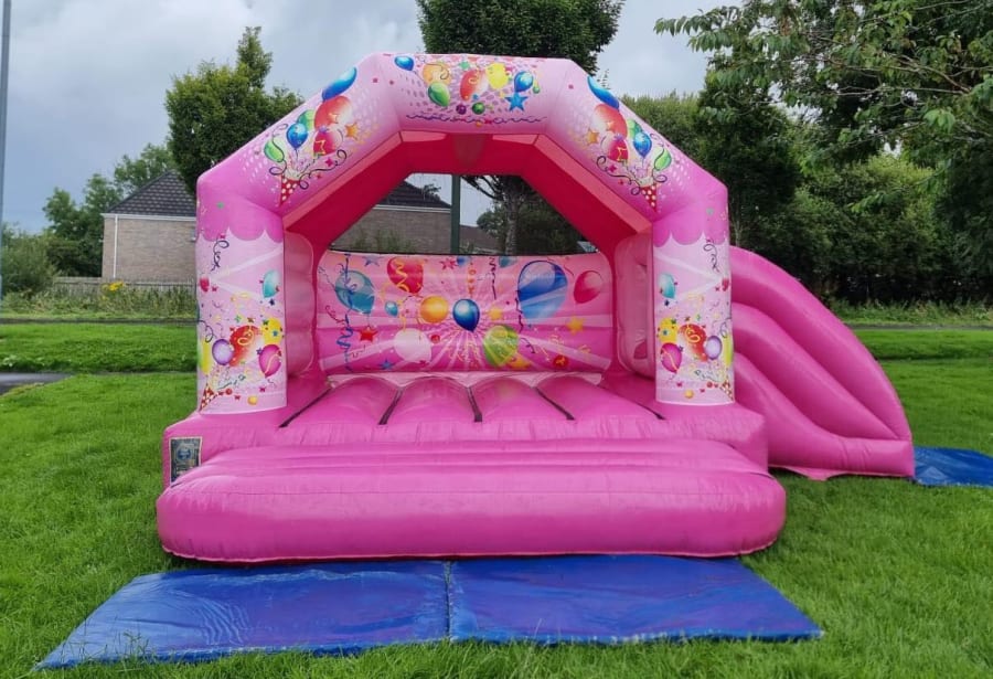 We have similar sized castles with a front slide if you have a narrow garden. Please click here Neutral Box Bouncy Castle with Slide 18ft x 13ft